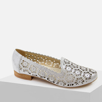 Baleriny damskie STREFA KOBIET 2020 Beżowe skórzane ażurowe wsuwane