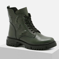 Botki damskie MACIEJKA Trzewiki skórzane ocieplane zielone oliwkowe 06145
