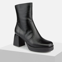 Botki damskie SIMEN Czarne skórzane na obcasie Ocieplane