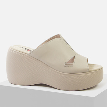 Klapki damskie FILIPPO Skórzane beżowe na platformie Stylowe DK6158