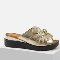 Klapki damskie BOMBONELLA złote skórzane na platformie z kokarda P323