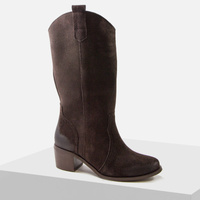 Kozaki damskie LAURA PIACCI 3305 Welurowe ażurowe skórzane Zamszowe kowbojki brazowe