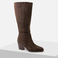 Eleganckie Kozaki damskie KOTYL Brązowe skórzane welurowe na obcasie 3565