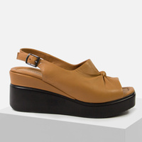 Sandały damskie BOMBONELLA pomarańczowe skórzane na koturnie karmelowe P157