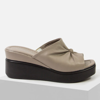 Klapki damskie S.BARSKI Beżowe Skórzane ażurowe na koturnie z ozdobą 662