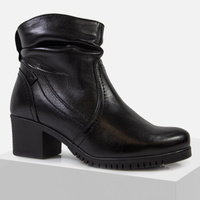 Botki damskie GALANT Eleganckie Skórzane Czarne Ocieplane na obcasie 703
