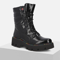 Botki damskie RIEKER Trzewiki ocieplane Czarne lakierowane workery Y3330