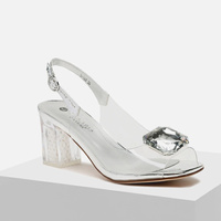 Sandały damskie silikonowe SABATINA 1014-18 Srebrne wieczorowe Na obcasie