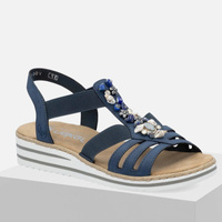 Sandały damskie RIEKER V0649-14 Granatowe na koturnie Antistress z gumkami