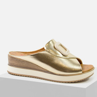 Klapki damskie ARTIKER 56C2146 Skórzane Złote Na koturnie Lekkie z ozdoba
