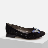 Czółenka damskie DASZYŃSKI SA178A Ażurowe Czarne Zamszowe Baleriny