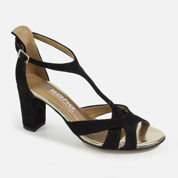 Sandały damskie SOHO 2082 Prestige Czarne Skórzane Na obcasie eleganckie wizytowe
