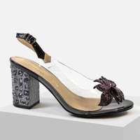 Czółenka damskie KOTYL Skórzane Czarne z cyrkoniami Ślub wesele 3713