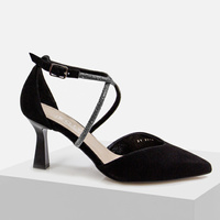 Czółenka damskie KOTYL 3713 skórzane Czarne zamszowe Cyrkonie Eleganckie