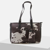 Torebka damska COVERI Duża shopperka Czarno Brązowa krówka z paskiem na ramię