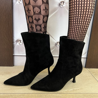 Botki damskie D&A Czarne skórzane zamszowe wsuwane Szpilki CR52-660