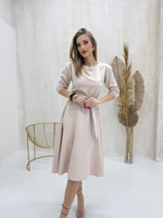 Elegancka sukienka damska A&I Beżowa koktajlowa Midi na wesele
