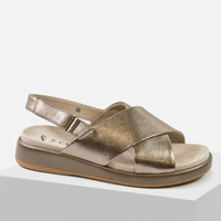 Sandały damskie CAPRICE Metaliczne skórzane złote na platformie 28704
