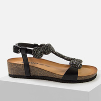 Sandały damskie IGI&CO Skórzane Czarne z kryształkami na koturnie 7698100