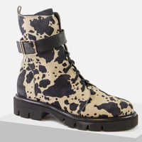 Botki damskie LAURA PIACCI Beżowe czarne skórzane zamszowe nieocieplane