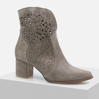 Botki damskie LEWSKI 3166 Welurowe skórzane Zamszowe kowbojki ażurowe Szary beż