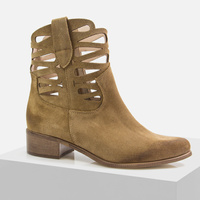 Botki damskie LEWSKI 3329 Welurowe ażurowe skórzane Zamszowe kowbojki brazowe