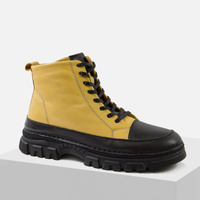 Botki damskie RAVINI skórzane trzewiki żółto czarne ocieplane zimowe VT158