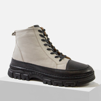 Botki damskie RAVINI skórzane trzewiki szaro czarne ocieplane zimowe VT158