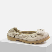 Baleriny damskie STREFA KOBIET 2020 Beżowe skórzane ażurowe wsuwane