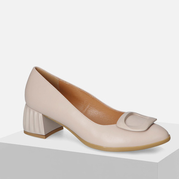 Czółenka damskie GALANT 1045 Beżowe Skórzane Półbuty eleganckie na obcasie